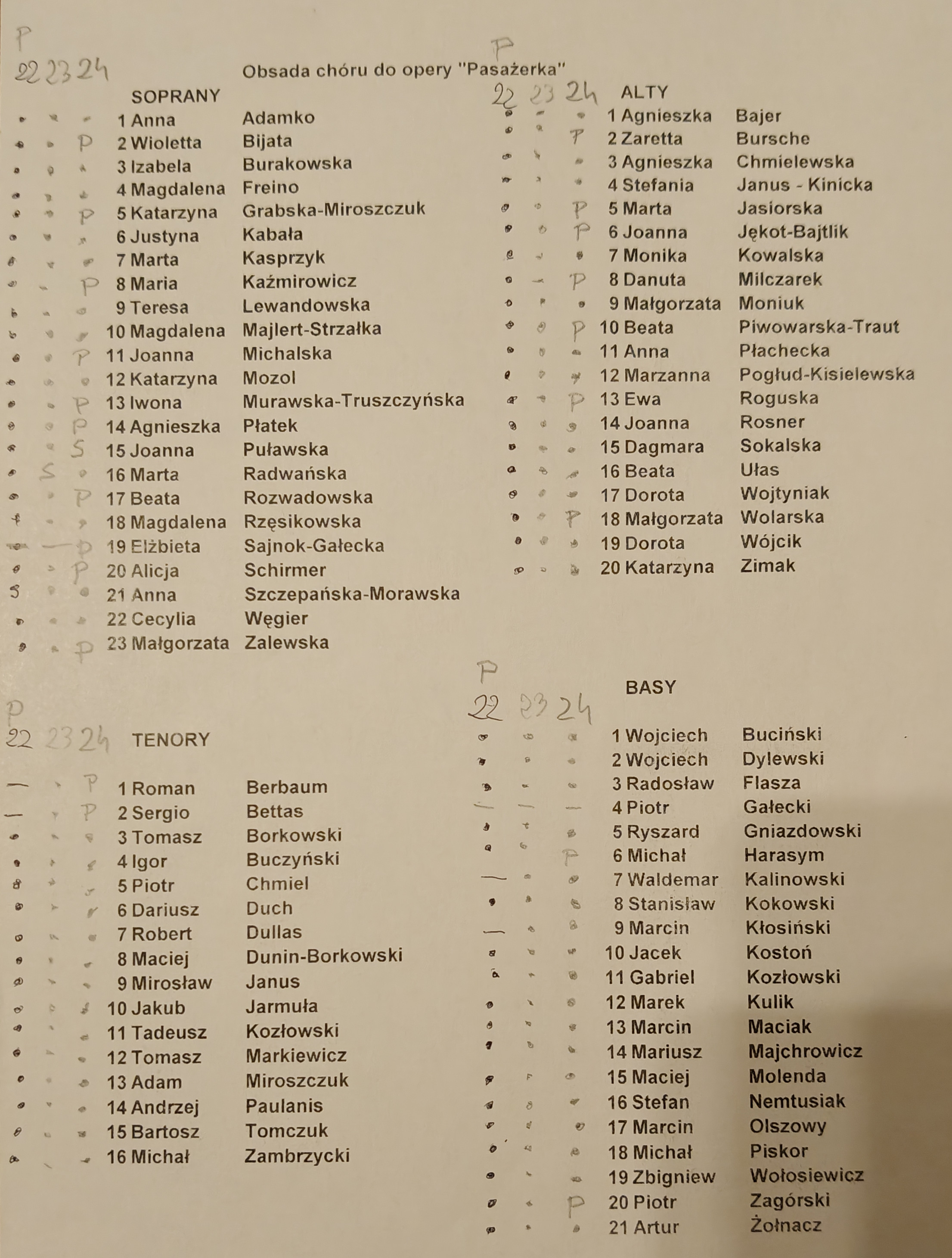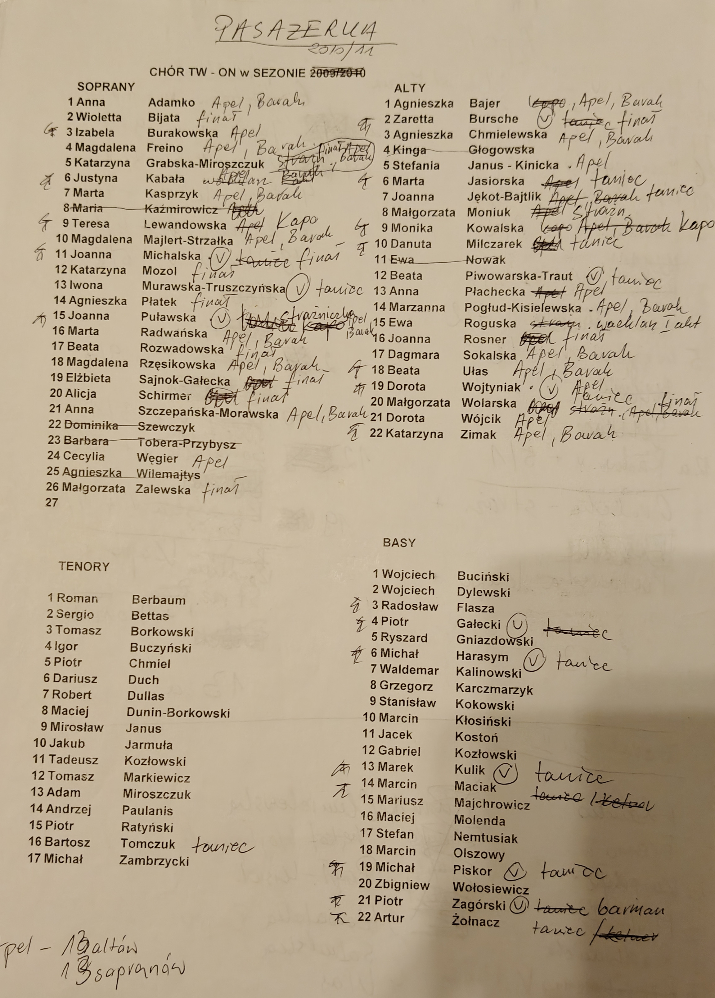 obsada tańcząca + BASY chór męski + obsada (20 pań) chór męski + obsada (14 pań) chór żeński (zakulisówka) + BASY obsada tańcząca tutti |